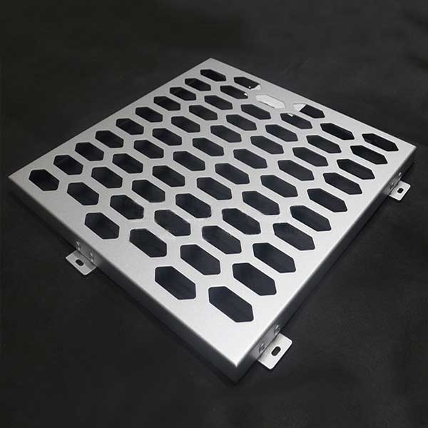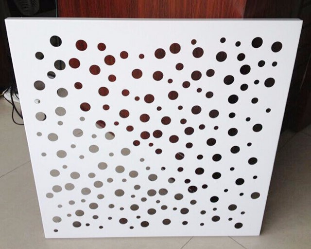 與常規鋁單板相比,沖孔鋁單板的特征就是表面形狀各異的沖孔(包括圓孔、方孔、五角星、六邊形孔等),裝飾效果突出,也能夠在一定程度上起到降低噪音的作用。集裝飾性與實用性于一體,沖孔鋁單板在工程裝飾中使用的越來越多。